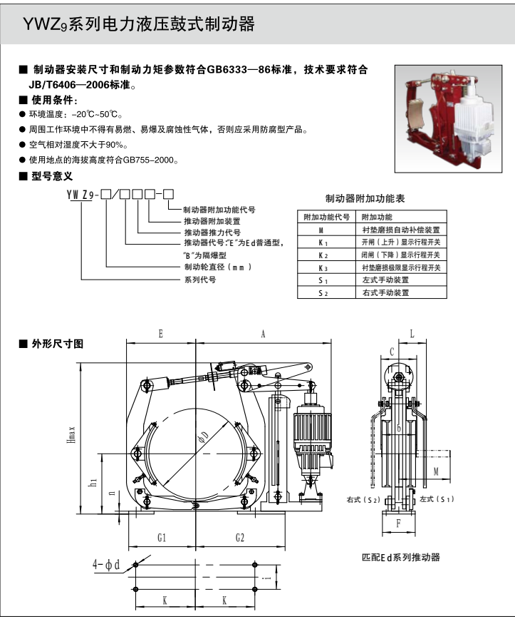 電力液壓制動(dòng)器是使機(jī)械中的運(yùn)動(dòng)件停止或減速的機(jī)械零件。俗稱(chēng)剎車(chē)、閘。制動(dòng)器主要由制架、制動(dòng)件和操縱裝置等組成。有些制動(dòng)器還裝有制動(dòng)件間隙的自動(dòng)調(diào)整裝置。為了減小制動(dòng)力矩和結(jié)構(gòu)寸, 制動(dòng)器通常裝在設(shè)備的高速軸上,但對(duì)性要求較高的大型設(shè)備(如礦井提升機(jī)、電梯等)則應(yīng)裝在靠近設(shè)備工作部分的低速軸上。有些制動(dòng)器已標(biāo)準(zhǔn)化和系列化,工廠制造以供選用。