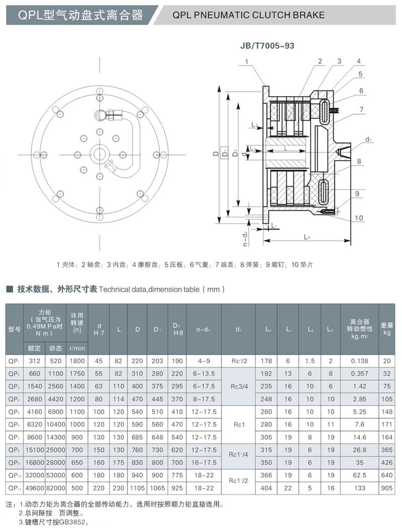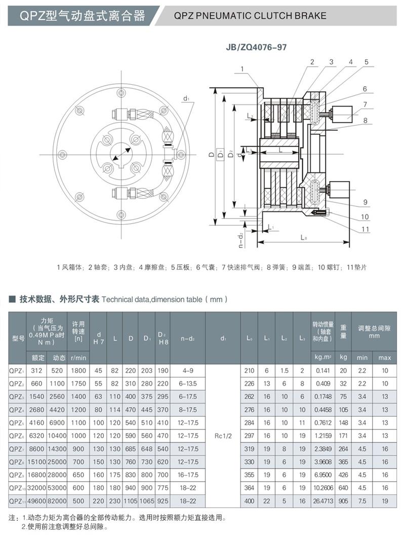 QPL型氣動盤式離合器具有制動和傳遞扭矩大、制動離合迅速、結(jié)構(gòu)簡單、工作可靠、維護(hù)方便等優(yōu)點(diǎn),廣泛應(yīng)用于冶金、起重、石油鉆采、造紙以及木材加工等行業(yè)中。型號:QPZ1/QPZ2/QPZ3/QPZ4/QPZ5/QPZ6/QPZ7/QPZ8/QPZ9/